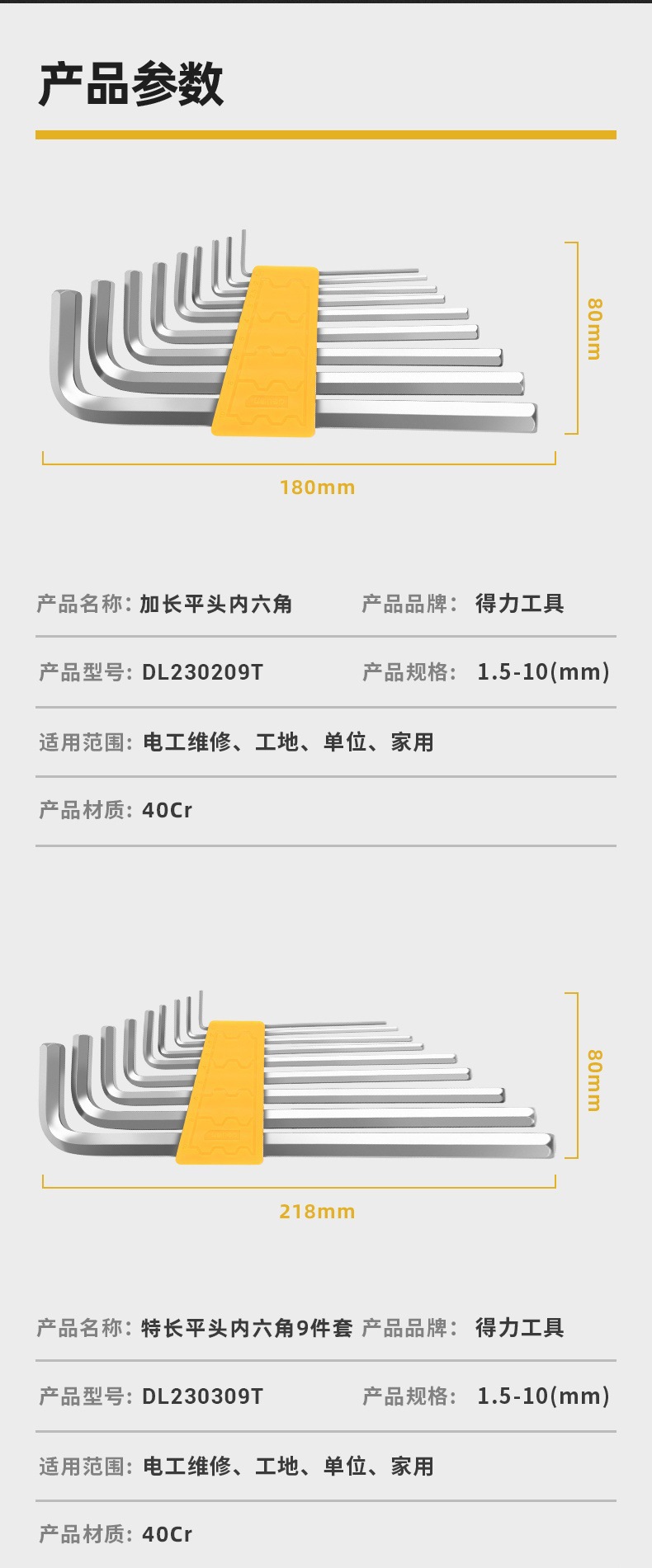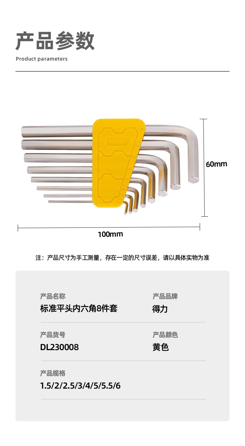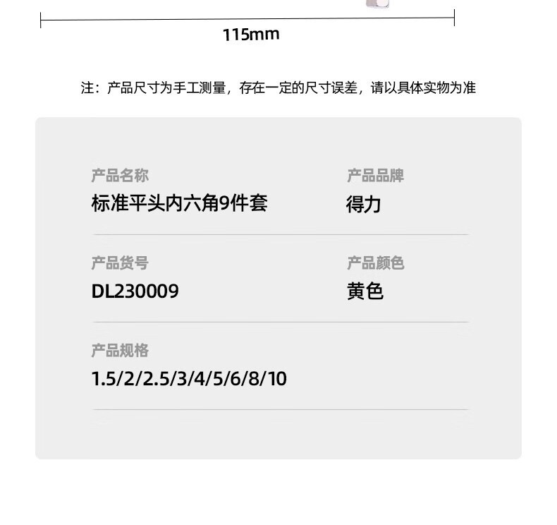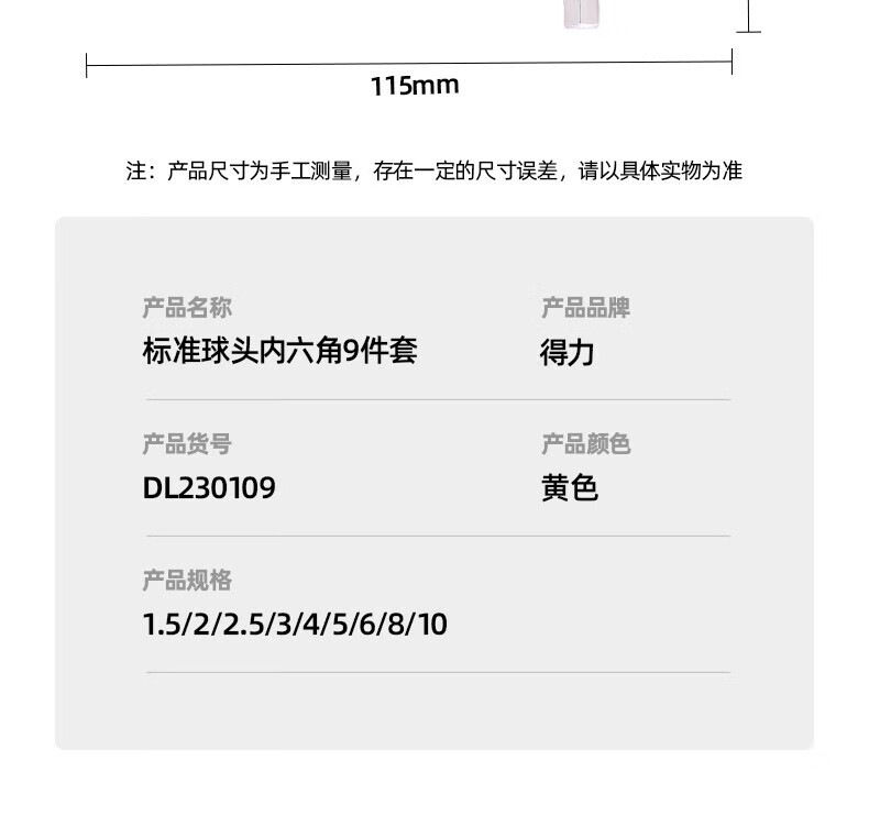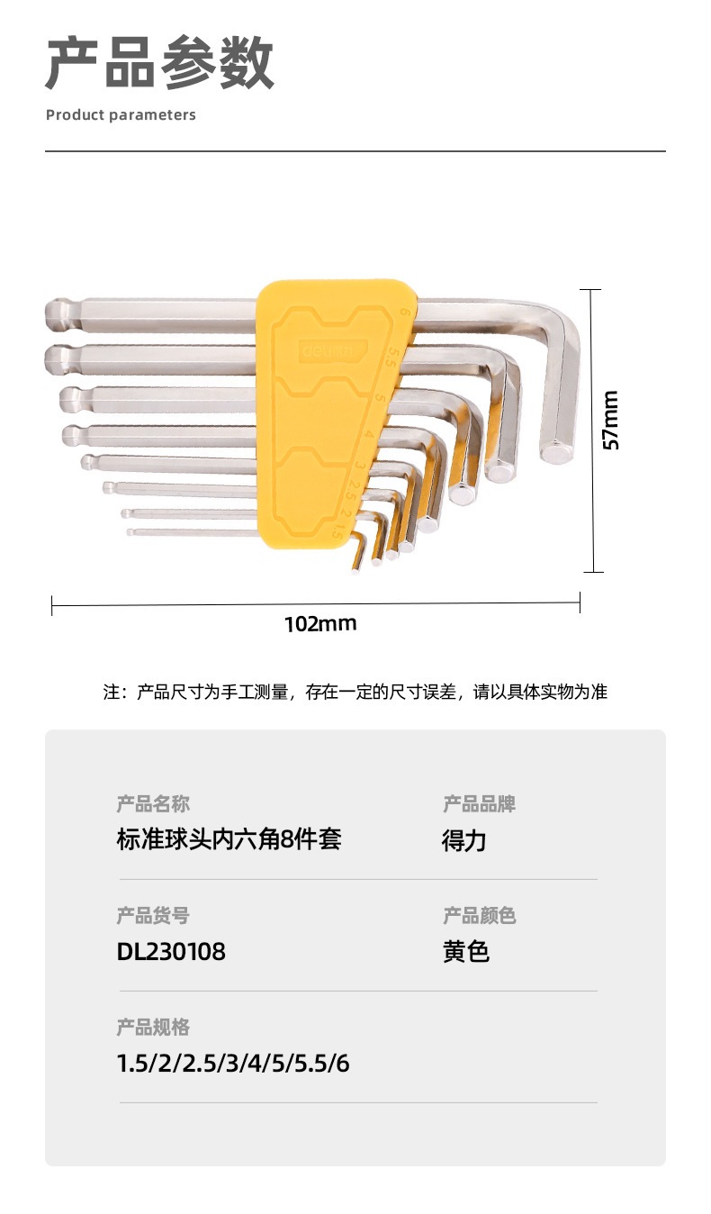 得力内六角扳手套装公制内六方组套梅花多功能螺丝刀L型平头球头